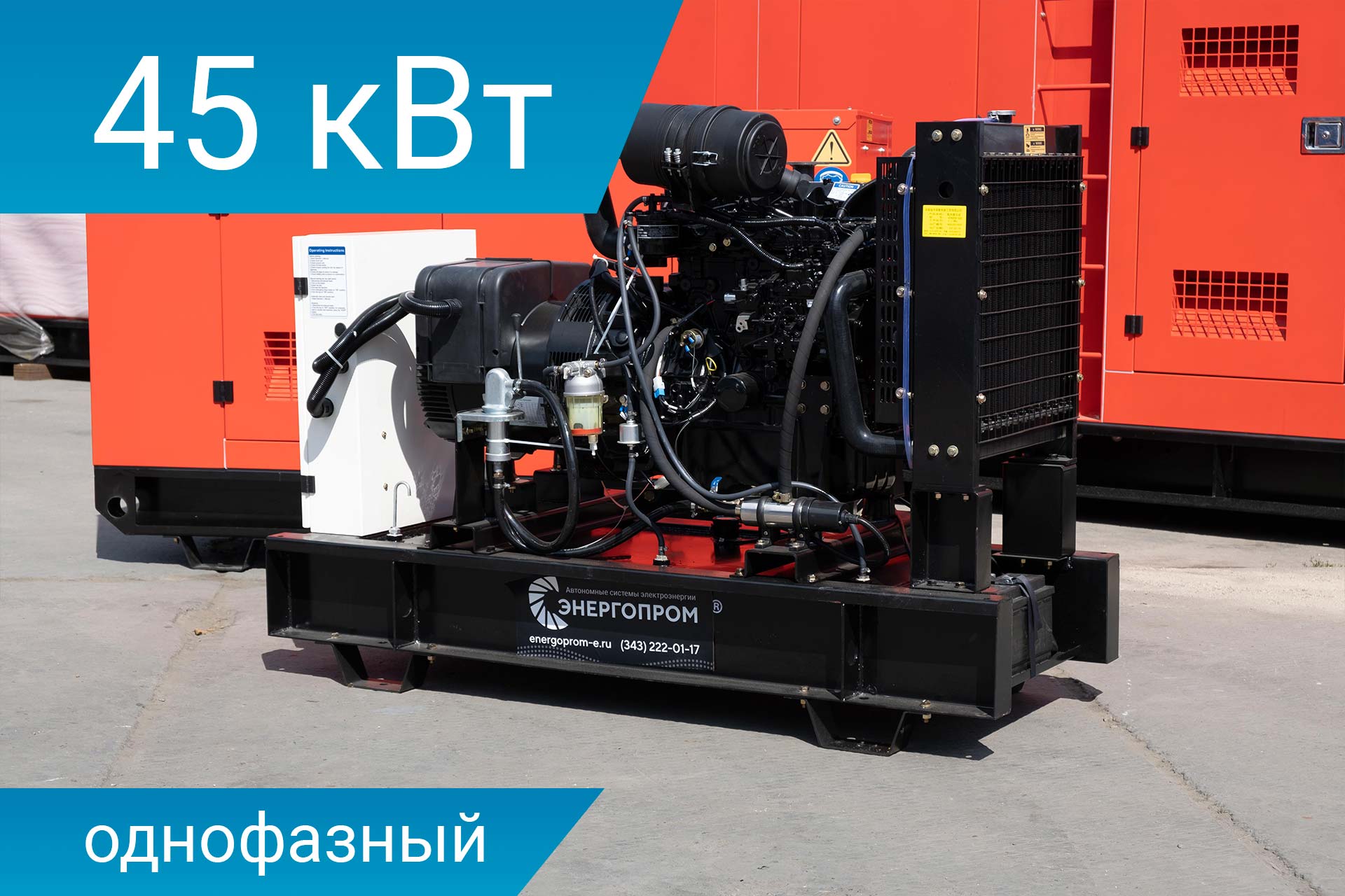 Дизельный генератор на 45 кВт с двигателем Yanmar в открытом исполнении. Панель управления на базе контроллера Deep Sea 6120. Автомат защиты генератора, устройство подзарядки АКБ и электрический подогрев охлаждающей жидкости (питание 220В). Электронный датчик уровня топлива, промышленный глушитель, аккумуляторная батарея.